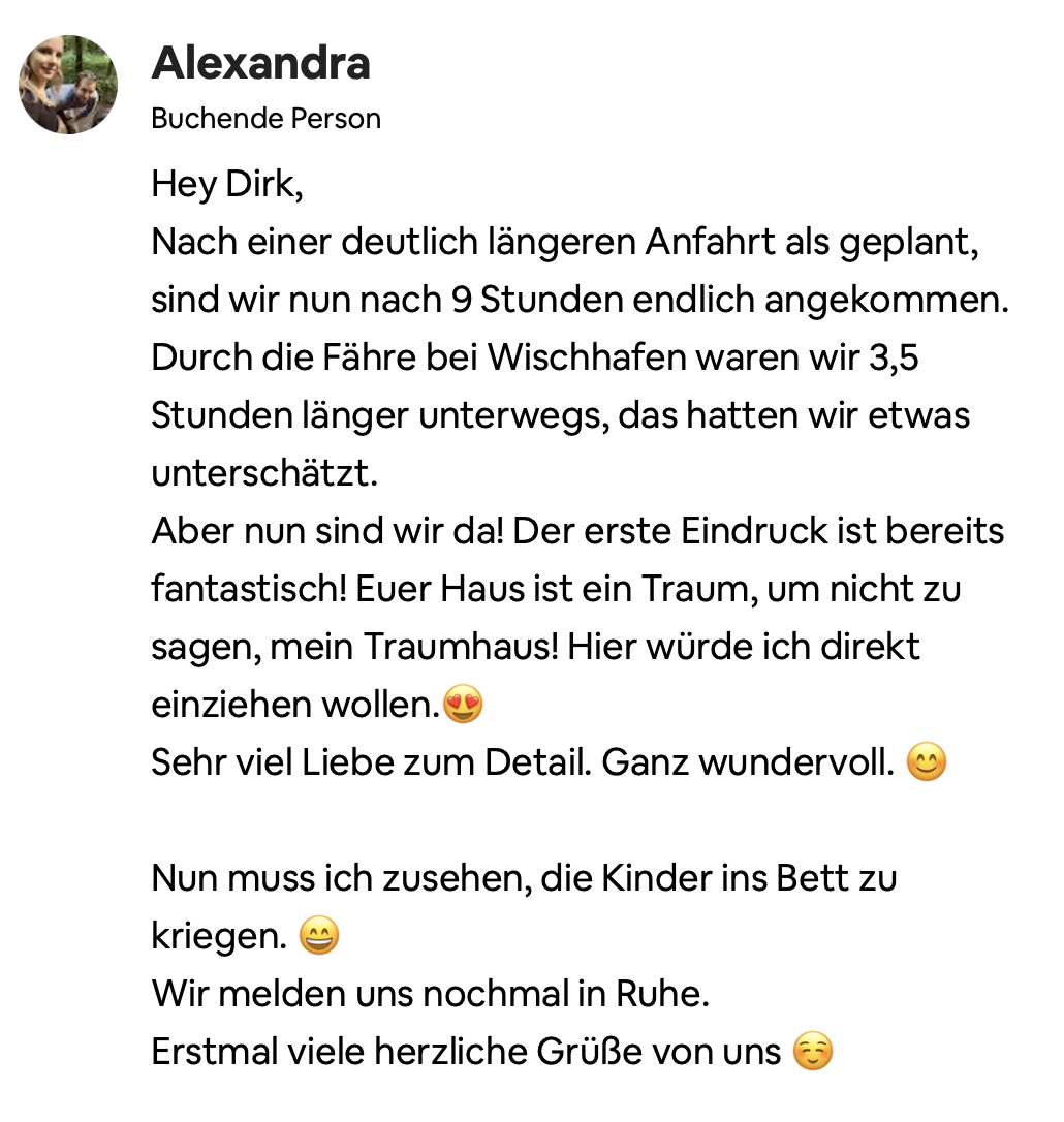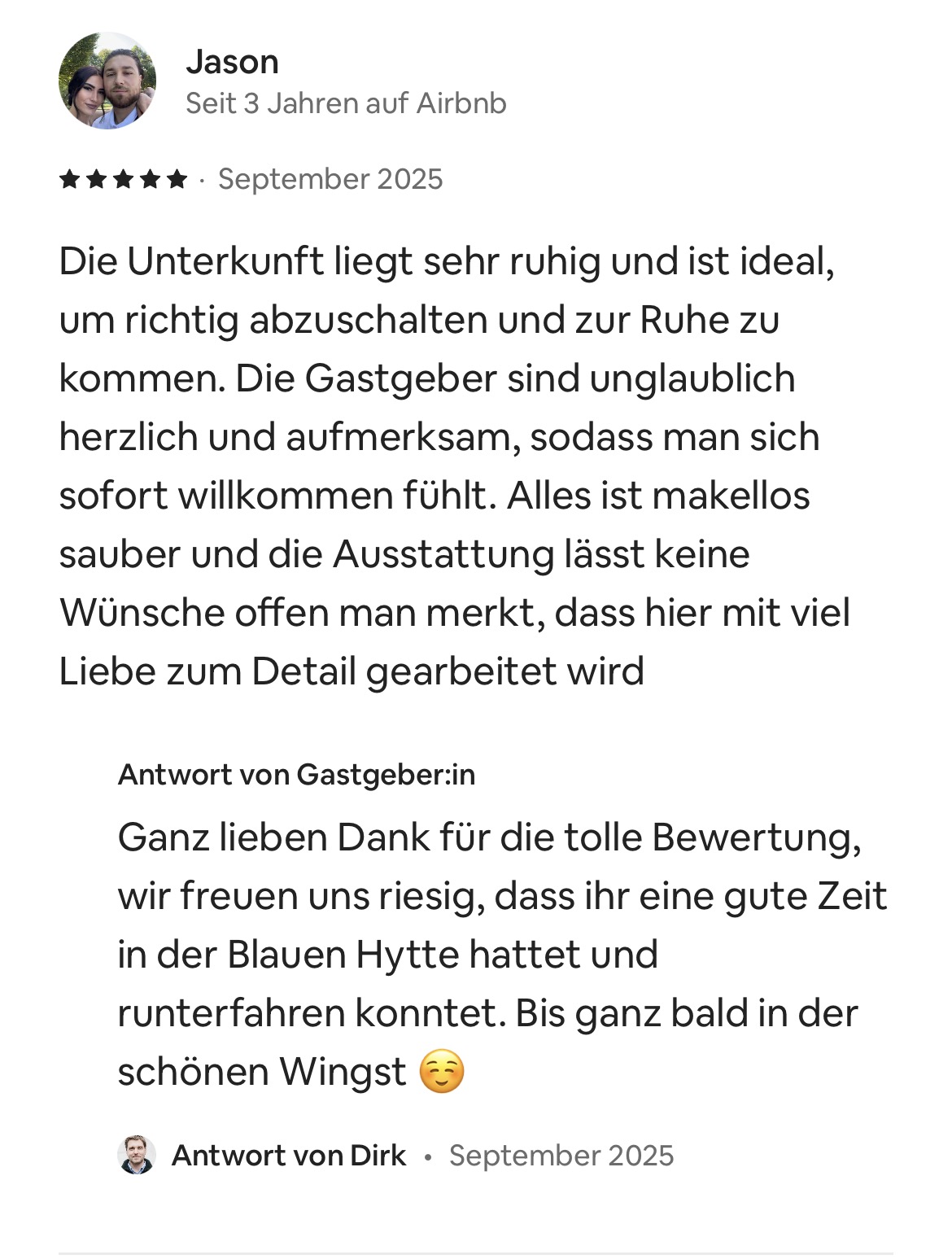 Aktuelle BewertungenAktuelle Bewertungen und Rezensionen findet ihr auf: Google Rezensionen oder Airbnb Bewertungen